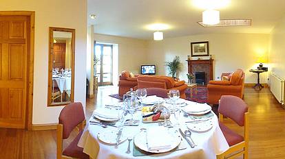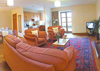 Waterside Cottage (sleeps 4) the largest of the three self catering holiday cottages overlooks the salmon pool just 200 meters up river where the River Crawick joins the Nith. It has an enormous spacious, comfy sitting room/ dining room with well equipped fitted kitchen. Furnished to a high standard with large comfortable sofa and easy chairs. The kitchen is fully equipped with electric cooker, dishwasher, fridge etc. and breakfast bar. The bedrooms too are very large and are set either as a double and a twin, two twins or even two doubles. The beds being zip and link form into a super king size or into comfortable singles. Extra beds and cot are available.